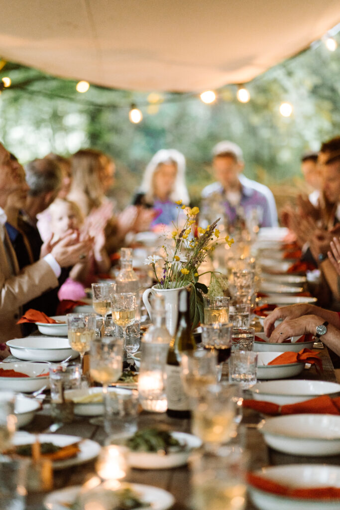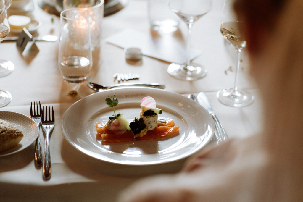 Ik leg de binnenkomst, de details. het uitserveren van de gerechten (wat prachtige foto’s oplevert!) en natuurlijk alle speeches vast. Op het moment dat iedereen daadwerkelijk aan het eten is, neem ik een pauze – want laten we eerlijk zijn, foto’s met volle monden zijn voor niemand flatterend!
